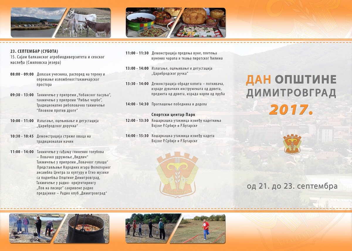 ДАН ОПШТИНЕ ДИМИТРОВГРАД 2017 – ОД 21. ДО 23. СЕПТЕМБРА